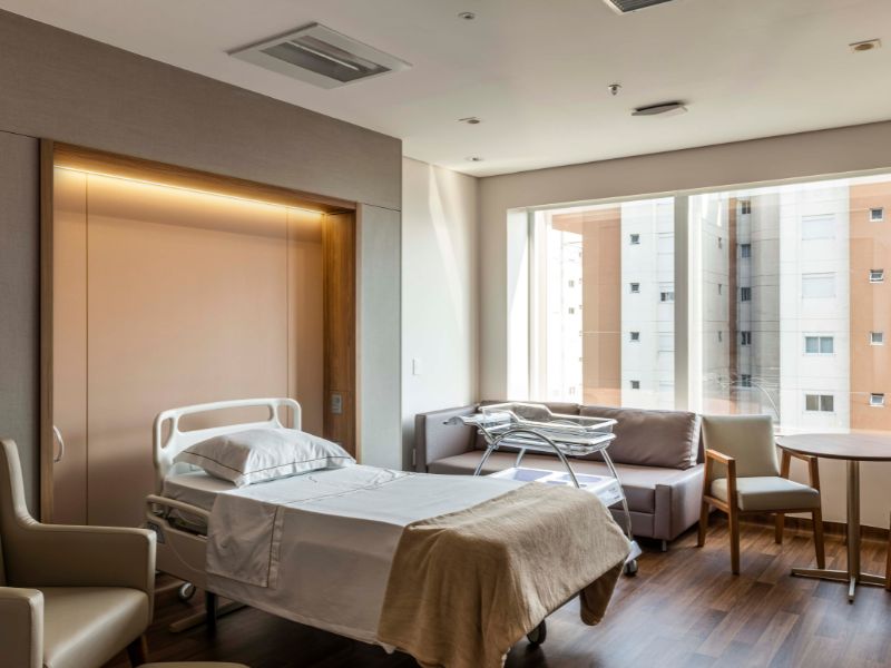 A maternidade conta ainda com salas exclusivas para cesarianas e cirurgias fetais, além de 22 leitos individuais de UTI neonatal, garantindo privacidade, conforto e cuidado integral à mãe e ao bebê.